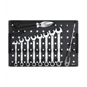 Dieses Werkzeugablagesystem stellt eine funktionelle Kombination aus Shadow Board und dem klassischeren thermogeformten Schubladeneinsatz dar. Es ist aus Aluminium gefertigt und daher äußerst pflegeleicht, rostet nicht und kann je nach Bedarf neu konfiguriert werden.