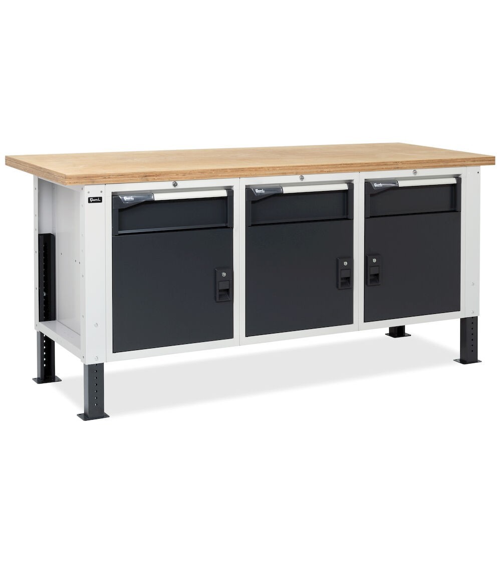 Werkbank MASTERBR2004 mit 3 Schränken mit 1 Schublade und Tür
