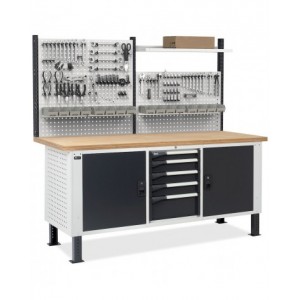 Werkbank mit Schrank mit 5 Schubladen, 2 Fächern mit Türe und Lochwand, MASTERBR2011