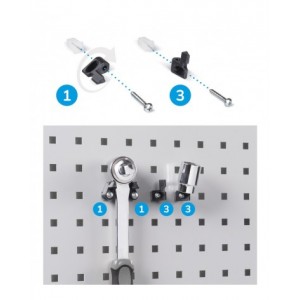 Diese professionelle Werkbank mit Werkzeugwand zeichnet sich durch Lochplatten mit Vierkantlochung 10x10 mm und Abstand 38 mm aus, die es erlauben, immer alle am meisten verwendeten Werkzeuge und Arbeitsinstrumente gut sichtbar und griffbereit zu haben. Die Werkzeugwand ist in hohem Maße je nach Anforderungen persönlich gestaltbar, indem man sowohl die Position der Werkzeughaken und Zubehöre als auch die Platten selbst für Werkbank ändern kann. Letztere können in der Tat als Werkzeugträgerplatten und als horizontale oder geneigte Konsolen komplett mit Halterand verwendet werden.Die ausgerüstete Werkbank Serie Master besitzt eine Tragfähigkeit von 800 kg und ist mit einer Multiplex-Arbeitsplatte aus Buche mit 40 mm Dicke und einem Schubladenschrank Master mit 6 Schubladen ausgestattet, deren Auszug und Tragfähigkeit reguliert werden können. Die Beine sind höhenverstellbar und weisen eine innovative Bohrung für die Installation einer Mehrfachsteckerleiste mit 2 Steckplätzen auf.Diese Lösung ist komplett mit 270 Haken Unipok und 20 Behältern Picking Box Air.